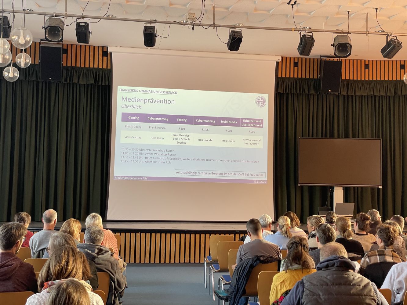 Die Schulpflegschaft lud am vergangenen Samstag zum Medienpräventionstag ein. Nach einer allgemeinen Einführung konnten sich die teilnehmenden Eltern in Workshops gezielt mit verschiedenen Themen im Bereich der Mediennutzung informieren. Zu folgenden Themen wurde informiert und aufgeklärt: