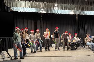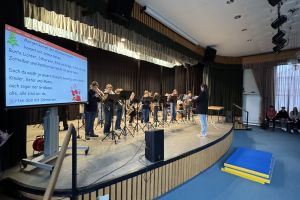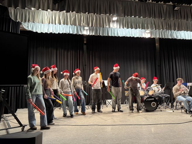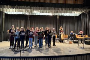 Der erste vorweihnachtliche und kreative Adventsnachmittag liegt hinter uns. Am Dienstag der letzten Schulwoche vor den Weihnachtsferien wurde in der Aula ein buntes Programm geboten, das die Schülerinnen und Schüler des Chors, des Orchesters und verschiedener Musik und DG-Kurse vorbereitet hatten. Das musikalische Programm hielt Weihnachtslieder bereit, die einerseits der Chor unter der Leitung von Frau Laudenberg präsentierte, andererseits eine neue Band (der EF-Musikkurs) mit Schlagzeug und E-Gitarre spielte. Abwechslungsreich unterbrochen wurden Gesang und Musik durch Theaterbeiträge und kurze Lesungen der Kurse im Fach Darstellen und Gestalten. Der DG-Kurs Klasse 9 unter der Leitung von Frau Willms hatte kurze Slamtexte (z.B. „Santa tell me“) und kleine Sketche wie „Oma kommt an Weihnachten zu Besuch“ vorbereitet, mit denen die Schülerinnen sowohl tiefgründige Gedanken zum Weihnachtsfest als auch lustige Beiträge äußerten. Das wurde von den Schülerinnen und Schülern des DG-Kurses Klasse 10 unter der Leitung von Frau Köster noch weitergeführt. Hier hatten sich die jungen Schauspieler selbst kleine Parodien zu bekannten Geschichten und Filmen wie „Der Grinch“ oder „Kevin allein zu Haus“ überlegt und damit das Publikum, welches aus vielen MitschülerInnen, Eltern, Großeltern und LehrerInnen bestand, unterhalten. Mit einer akrobatischen Tanzeinlage faszinierte eine Mädchengruppe aus dem Sportkurs der 6a bei Frau Feder. Abschließend wurde gemeinsam in der Aula das Lied „Christmas Time“ von Bryan Adams gesungen, bevor es dann im Foyer zum Abschluss ein Stück Kuchen, Punch und Kaffee gab. Darum hatten sich die Schülerinnen und Schüler der Jahrgangsstufe Q1 gekümmert.