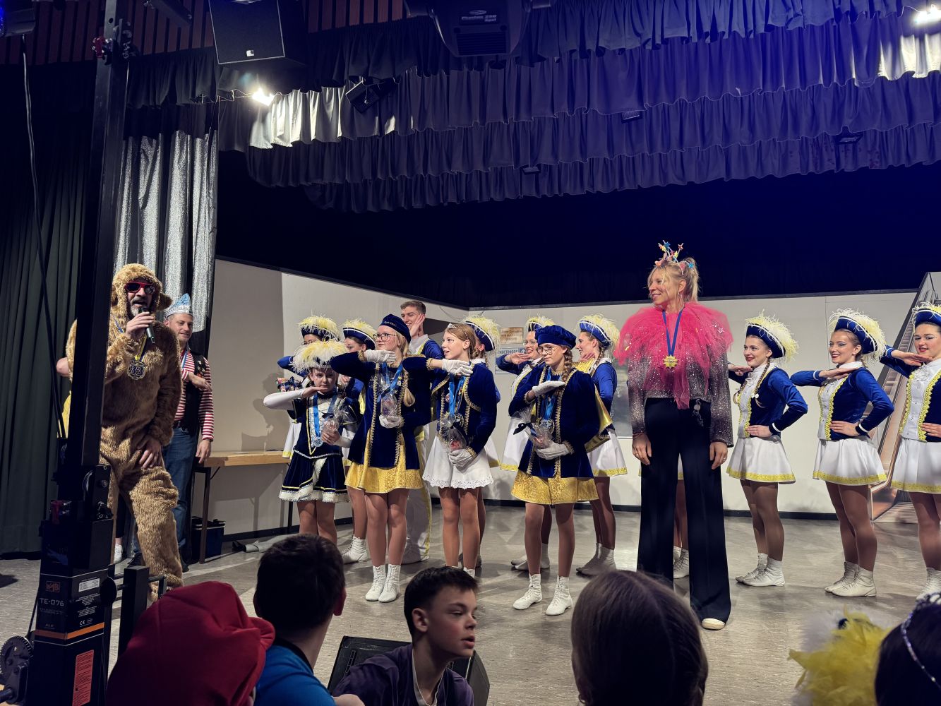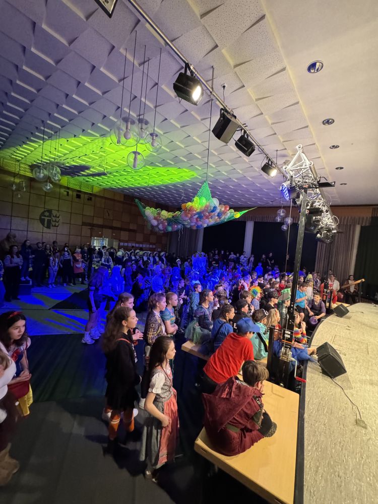Was war es bunt, wild und lustig! Am Mittwochnachmittag vor Weiberfastnacht findet traditionell unsere Unterstufenfete in der Aula des Gymnasiums statt. Die SV hatte auch in diesem Jahr wieder eine äußerst gelungene Unterstufenparty organisiert. Mit tatkräftiger Unterstützung der beiden SV-Lehrkräfte Herr Braun und Frau Kremer wurde es eine gelungene, bunte Fete, bei der die Kinder aus den Klassen 5-7 mitfeierten. Egal ob Polonäse durch die Aula, Gastauftritte der KG Sonnenfunken oder Stopp-Tanz: Das Programm war vielfältig und sehr unterhaltsam. Zum Finale gaben die Lehrerinnen und Lehrer beim Karaoke ein paar Hits zum Besten. Ob Wackelkontakt oder Angels, alles kein Problem für das textsichere und stimmlich selbstbewusste Lehrerkollegium, das in bunten Kostümen von der wilden Karnevalsmeute gefeiert wurde. Zudem wurden die besten Kostüme gekürt. Cruela de Vil, eine Putzfrau und ein Taucher gewannen den Kostümwettbewerb. Den Titel für das lustigste Gruppenkostüm erlangte eine Gruppe Minions, die sogar einen lilafarbenen, bösen Minion dabei hatten. Frau Feders lustiger Fliegenpilz wurde zum besten Lehrerkostüm ernannt. Ein großes Dankeschön gilt allen Schülerinnen und Schülern der SV und den unterstützenden Lehrkräften, die diesen Nachmittag mit viel Engagement möglich machten. Wir freuen uns bereits jetzt auf das nächste Jahr. Nun starten wir erst einmal in die Fastenzeit und kehren am Aschermittwoch wieder in den Schulalltag zurück.