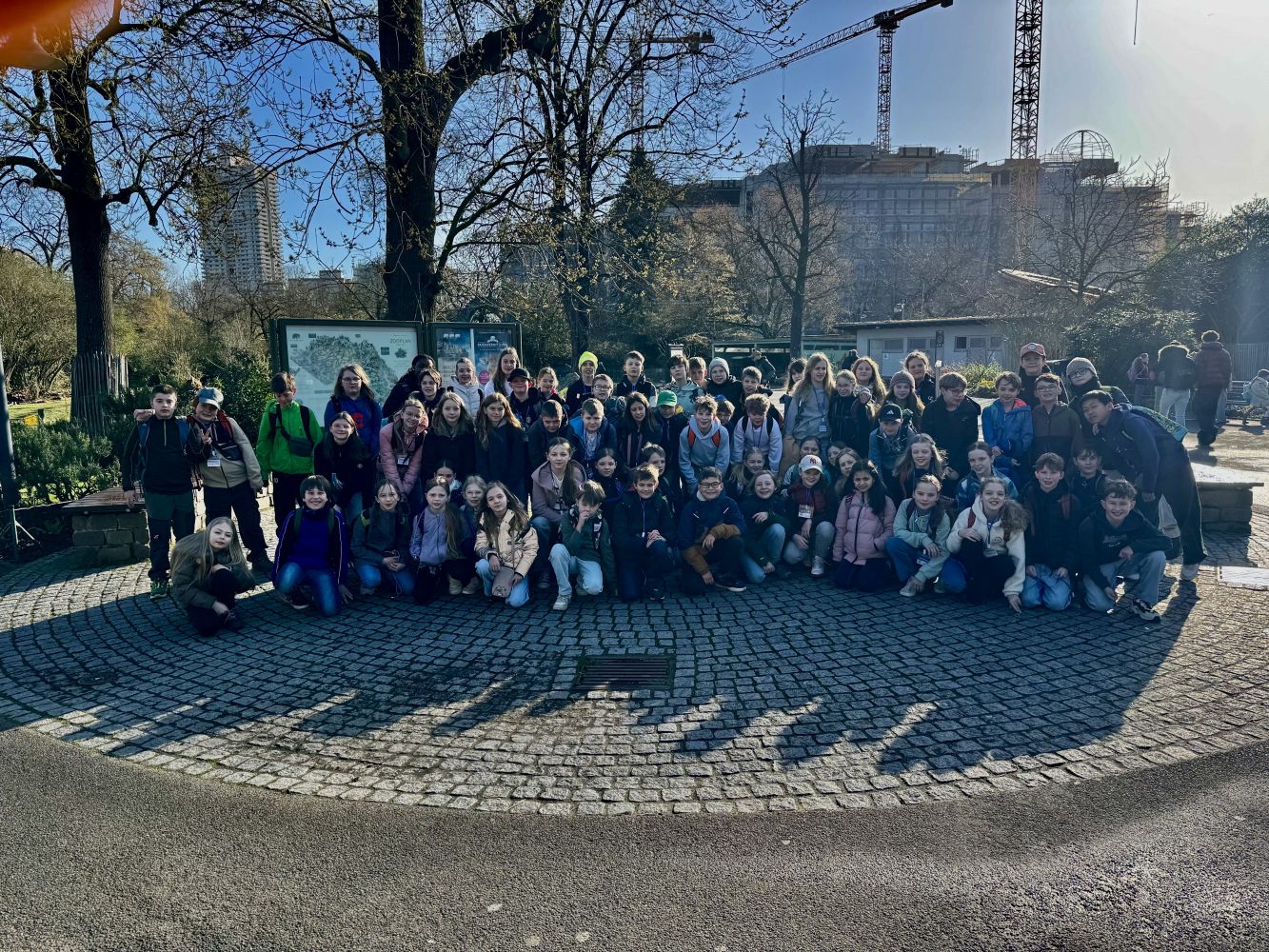 Sich kennenlernen, etwas gemeinsam erleben und Erinnerungen schaffen: Mit diesem Ziel fuhren in der vergangenen Woche die Kinder der Jgst. 5 gemeinsam mit ihren Lehrerinnen Frau Grodde, Frau Laudenberg und Frau Melchior-Seck sowie ihrem Lehrer Herr Meul nach Köln. Für zwei Nächte quartierte man sich in der Jugendherberge Köln Rhiel ein, direkt am schönen Rhein gelegen. Von hier aus ist der Weg in die Stadt nicht weit, wo es am ersten Tag eine spannende Rallye gab, gefolgt von einer Dombesichtigung und einem kurzen Shoppingtrip in der Innenstadt. Einmal in der großen Stadt sein, das ist immer ein Highlight bei den Kindern dieser Jahrgangsstufe, für die jedes Jahr diese Kennenlernfahrt in die jecke Stadt geplant ist. Am zweiten Tag besuchte die Gruppe von 68 Kindern mit den vier Lehrkräften den Kölner Zoo. Am Nachmittag wurde dann im Sport-und Olympiamuseum getobt. Hier können die jungen Besucher diverse Sportarten ausprobieren und sogar auf dem Dach des Gebäudes mit Blick über den Rhein eine Runde Fußball spielen. Am Freitagmittag ging es dann mit dem zug wieder zurück auf's Land. Mit vielen Eindrücken und einem ganz neuen Klassenzusammenhalt berichteten die Kinder am Montagmorgen von ihrer Reise, die ihnen im ersten Jahr am FGV sicher in Erinnerung bleiben wird.